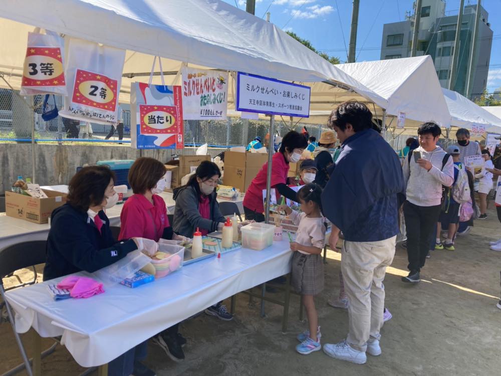 本会は、区民のスポーツ・レクリェーション活動の普及、健康増進ならびにコミュニティづくりを図るため、区民の方々を対象に卓球大会・ハイキング・囲碁・将棋大会・スポーツ大会などを開催しています。 こちらのイベントは初出店!ミルクせんべいとお楽しみくじで100円です。