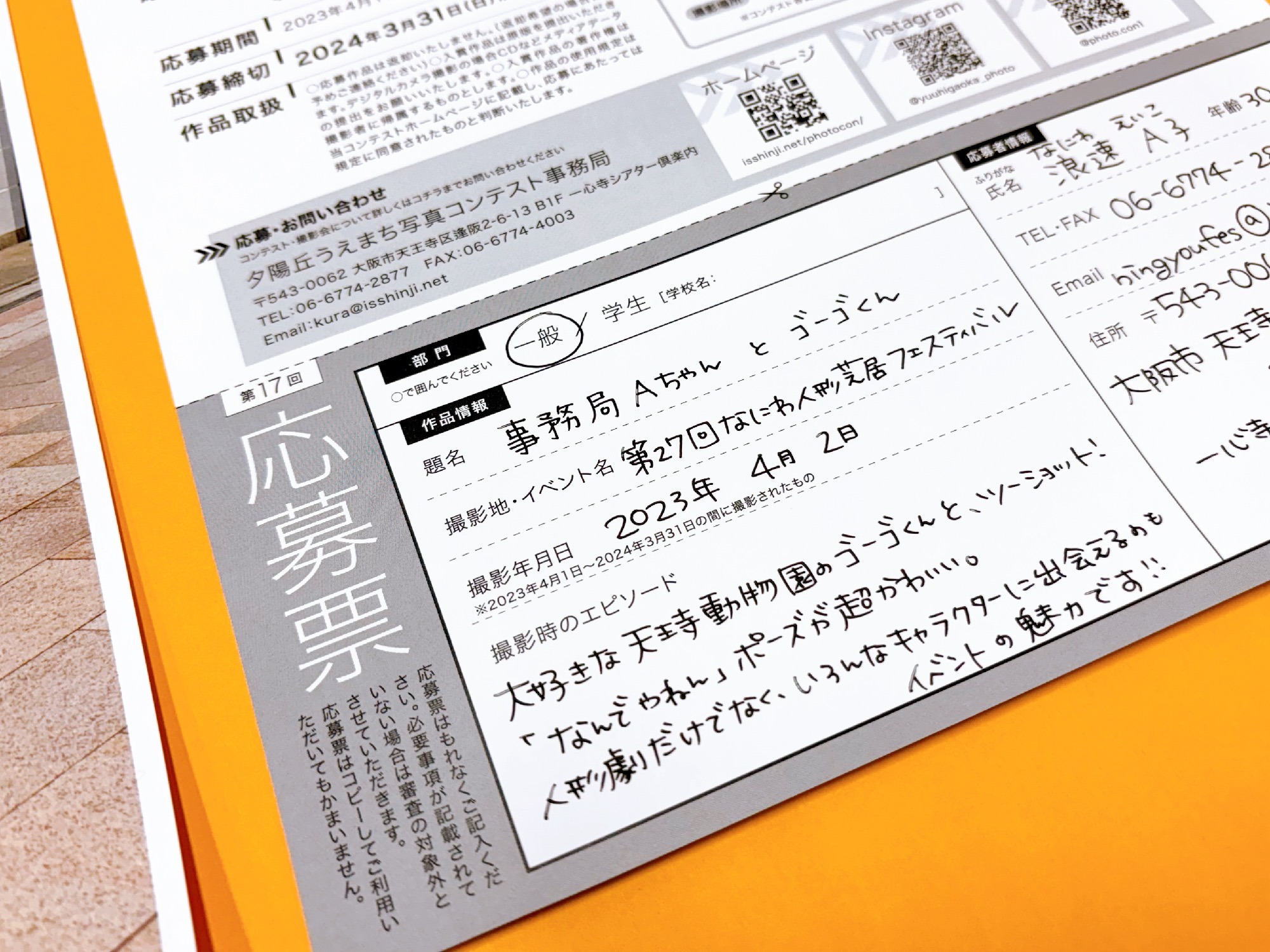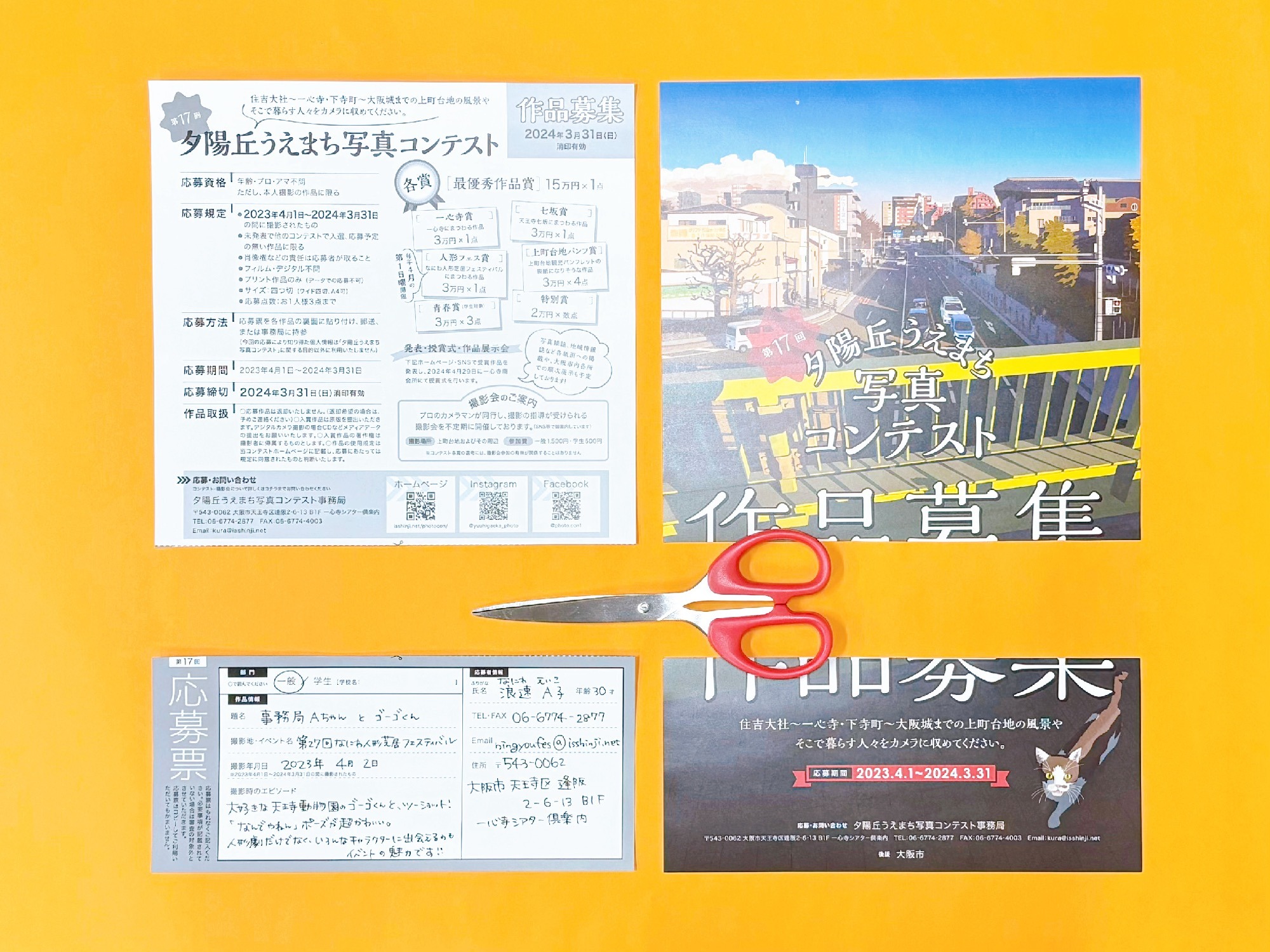 応募票は夕陽丘うえまち写真コンテストのホームページからダウンロードして、ご自宅で印刷したものを使用いただいてOKです。