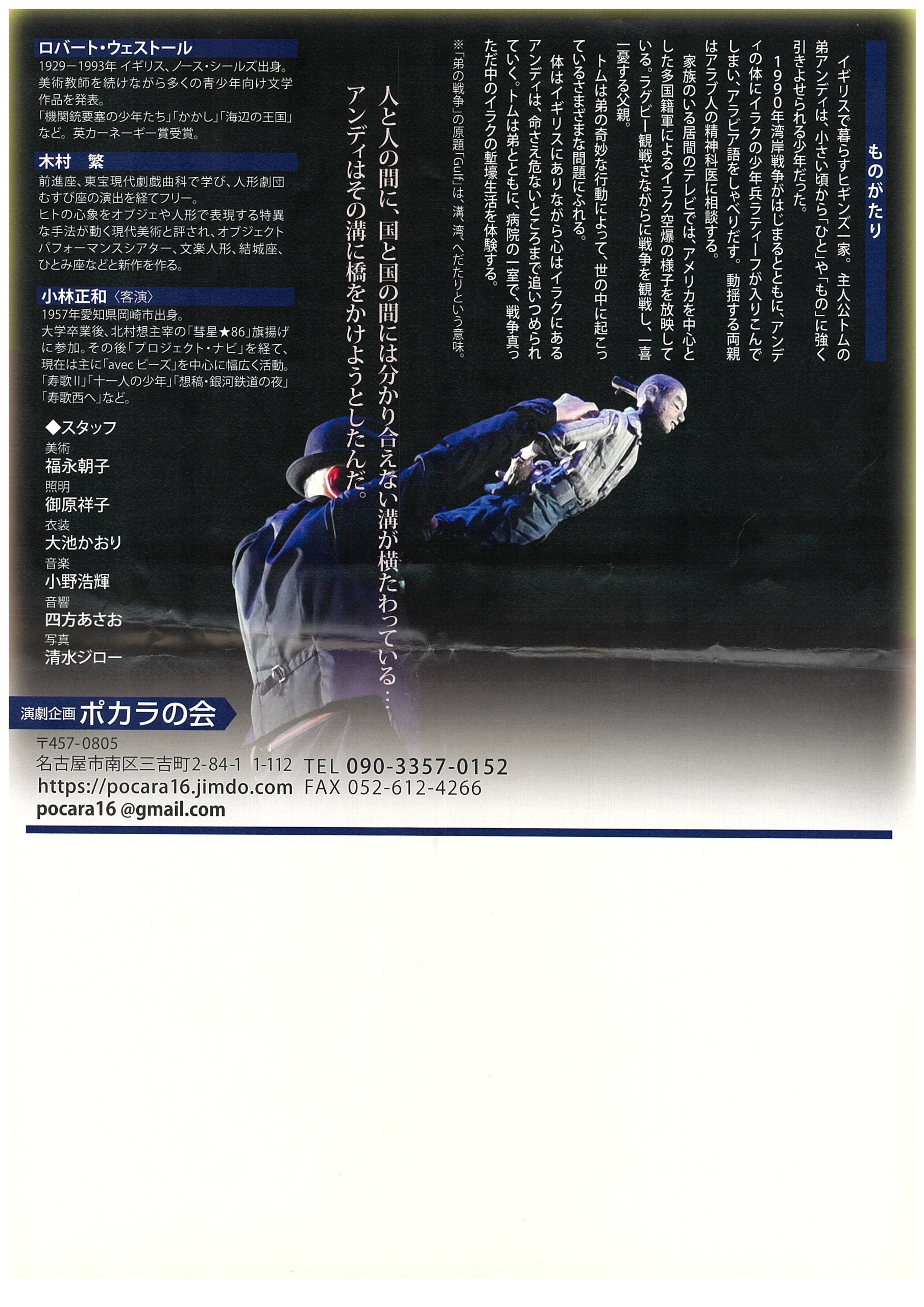 昨日「いいだ人形劇フェスタ」は終幕。 私も大阪でこれを書いている。 5日(土)夜、最後に花火が上がったので載せておこう。   フェスタも飯田祭りも4年ぶりだ。 地元の人には感慨深い花火だろう。 今回お世話になった「ホテル弥生」さん。 声を大にして言いたい!!「ホテル弥生は最高だ!!」 綺麗!スタッフが感じいい!部屋が広い! 廊下の冷蔵庫のお酒は全て「200円」! (ビジネスHは350缶ビールが350円だったりするでしょ?) 大浴場は終夜~朝九時まで入れる! (これでサウナがあったら関係ない時でも泊りたい) そして、そして「安っすい!」 精算の時に「もっと値上げしていいんじゃないすか?」 と本気で言ってしまった。 そんな弥生さんをチェックアウトし、 『かざこし子ども子どもの森公園』へ。 「なにわ」の「紙芝居わんぱく万博」で いつもまとめ役をしてもらっている 「たっちゃん」プロデュースの紙芝居特集を見に行くのだ! めちゃめちゃ綺麗な施設が公園内にある・・・しかし! 「紙芝居特集」昨日だった!!(゚Д゚;) なんとプログラムの日付が1日「ミスプリ」していたのだ。 ・・・・・・・ しかし、責める気にはなれなかった。 イベント準備は常に「流動」する状況を、 それでも一つもミス無く整理整頓しなくちゃならん。 分かってる、分かってるんだが、、、「人間だもの・・・」 明日は我が身だ。 「HPとSNSでは訂正してたんですけど・・・」 恐縮する現場のスタッフさんを責めてはいかん。 同じ「運営側」の人間として背筋が凍った。 だが、おかげで想定外の 「乳幼児向けのパネルシアター」を1本鑑賞。 ギリギリだったので、 「子どもを連れてない50絡みのおっさん」が乳幼児に交じって、なぜが2列目に座るはめになった(^^;) ママ連の目が少し気になるが、 しか~し!! 私の心はもはやそんな事では全然折れない。慣れっこだ。 手拍子にもコール&レスポンスにも全く参加しないが、 がっつり鑑賞。 そして最後には誰よりも👏しますよ(^^;) 「かざこし子どもの森」は充実した公園。 無料。 無料。 (大阪だと噴水止ってそう・・・) 長野は保育園事情なども充実した県であるらしい。 山を下りて今度は「わけちゃんとBUNちゃん」を鑑賞。 期せずして「パネルシアター」2連チャンになった。 こちらは一応「子ども向け」な題材だが、 極めて大人びた(^^;)笑いのセンスで、 会場の「大きなお友達」達が大爆笑!! こりゃすごい、いつか「なにわ」にもお呼びしたい。 中のお二人が「わけちゃんとBUNちゃん」 熟練の技のパネルシアターだった。 そして・・・そうだ!今日は最終日だ。お土産! 自分にも。 次の会場の向かうと今年4月の「なにわ」に出演して頂いた「座・とんとん」さんと再会。 そう、いつも飯田は人形劇界の人間達が「再会」する町なのだ。 すっかり「終わり」な雰囲気だが、 今回はここからもう一盛り上がりあった! これ、よかったな~~ (内容はチラシ裏面をご参照ください) 霊媒体質な主人公の少年を人形でやっている。 人間でええんちゃう?という意見も出るだろう。 しかし、「科学では解明できないもの」を抱えた少年であり、 別人格が宿る「器」であり、「異」であることが人形であることで明確であったと思う。 デビッド・ボウイの「let’s dance」の使い方カッコ良かったなぁ。 と、最終日にイイ感じで「これで打ち止めか・・・」と思っていたら、 もいっちょキタ~!