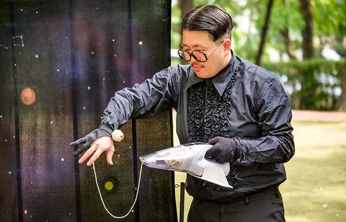Long & Short Company 「A show with strings」 (from 韓国 招聘上演) 30分、ノンバーバル。 「糸あやつり人形」ではない。 写真の様に「指」を主人公に、「糸」を使い、 言葉を使わず、観客を「宇宙」にまで連れていく。
